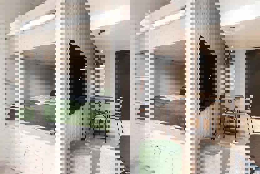 Alkove 1: 1 køjeseng (150 cm x 200 cm).