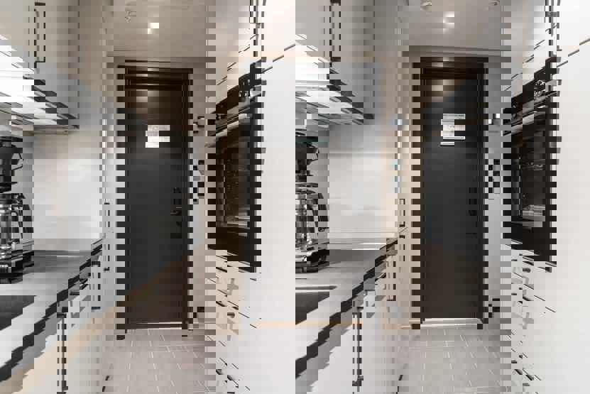 Indeholder bl.a. opvaskemaskine, komfur m/ovn, køleskab m/fryser.