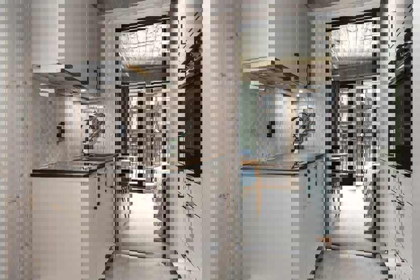 Indeholder bl.a. opvaskemaskine, komfur m/ovn, køleskab m/fryser.