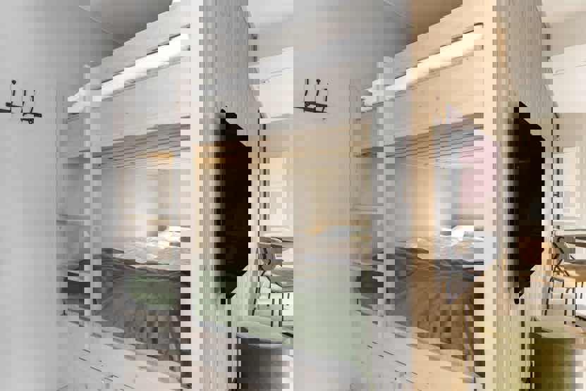 Alkove 1: 1 køjeseng (150 cm x 200 cm).