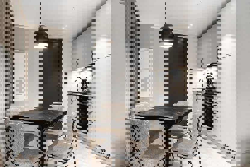 Indeholder bl.a. opvaskemaskine, komfur m/ovn, køleskab m/fryser.