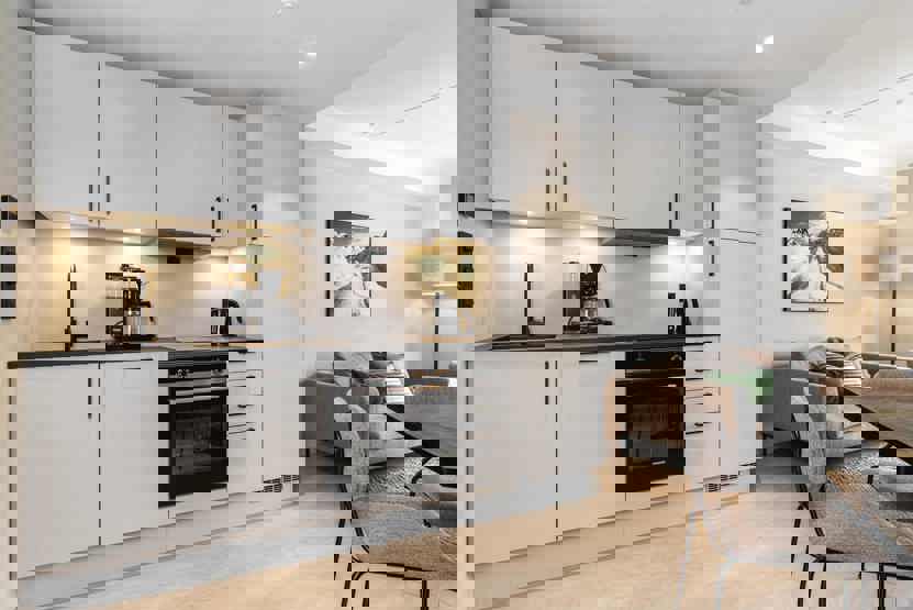 Ekstra info: TV. Elevator findes i huset. Parkering i garage mod betaling, adgang til fælles elbilopladere med type 2 stik mod betaling. Skiopbevaring med skotørrer findes i huset.
