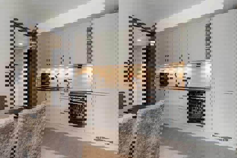 Indeholder bl.a. opvaskemaskine, komfur m/ovn, køleskab m/fryser.