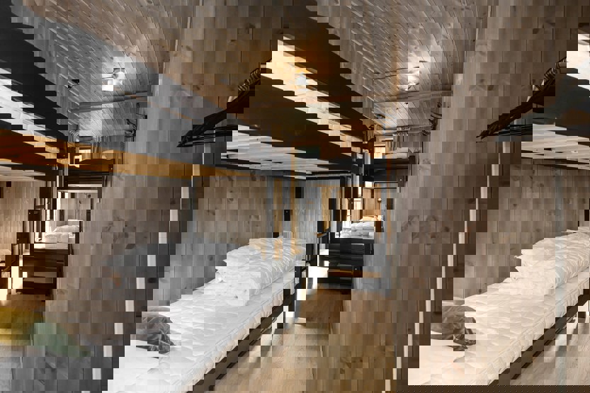 Soveværelse 1: 1 dobbeltseng (180 cm x 200 cm). Soveværelse 2: 2 køjesenge 90 cm bred. Alkove 1: 1 køjeseng hvor både over og underkøje er 150 cm bred.
