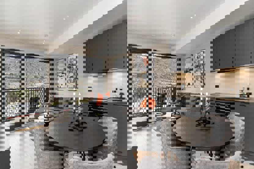 Ekstra info: TV, balkon (der skovles ikke sne), havemøbler. Elevator findes i huset. Parkering i garage mod betaling, adgang til fælles elbilopladere med type 2 stik mod betaling. Skiopbevaring med skotørrer findes i huset.