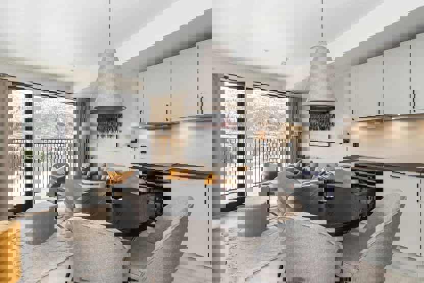 Ekstra info: TV, balkon (der skovles ikke sne). Elevator findes i huset. Parkering i garage mod betaling, adgang til fælles elbilopladere med type 2 stik mod betaling. Skiopbevaring med skotørrer findes i huset.