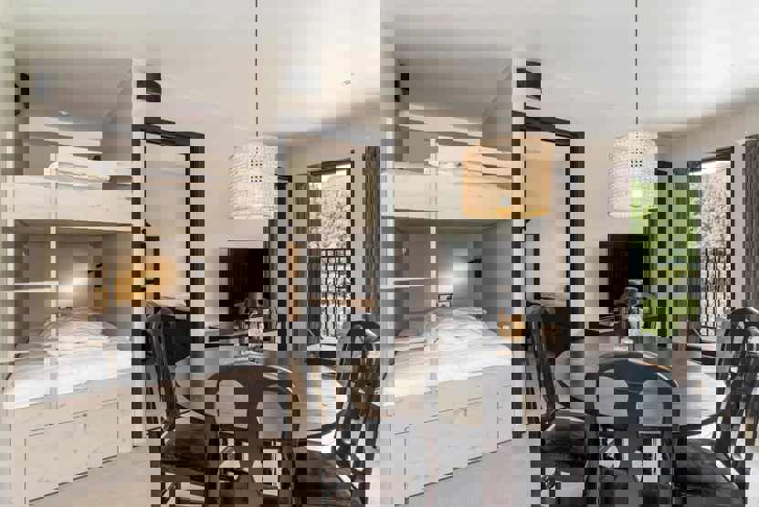 Soveværelse 1: 1 dobbeltseng (150 cm x 200 cm). Alkove 1: 1 køjeseng (120 cm x 200 cm).