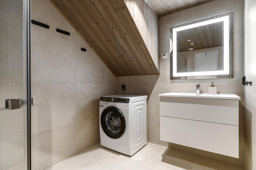 Lejlighed, 10 sengepladser, 116 m², alrum med køkkenafdeling, TV, gaspejs, 4 soveværelser, 2 brusere, 2 WC. Kombineret vaskemaskine/tørretumbler, skiopbevaring.