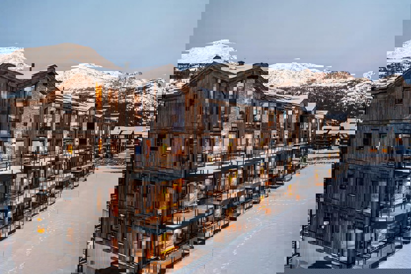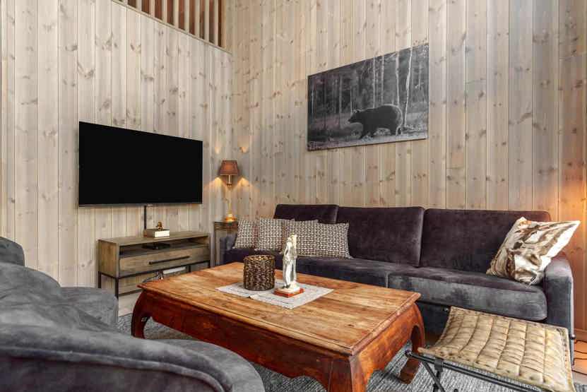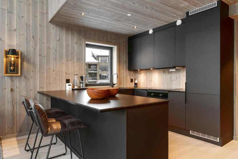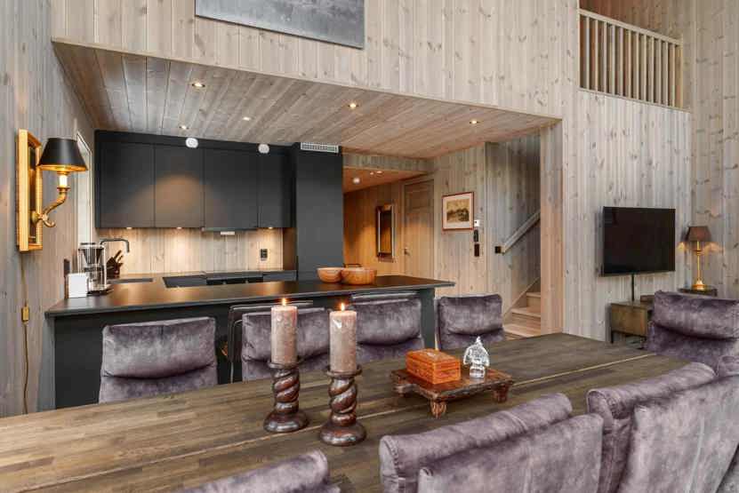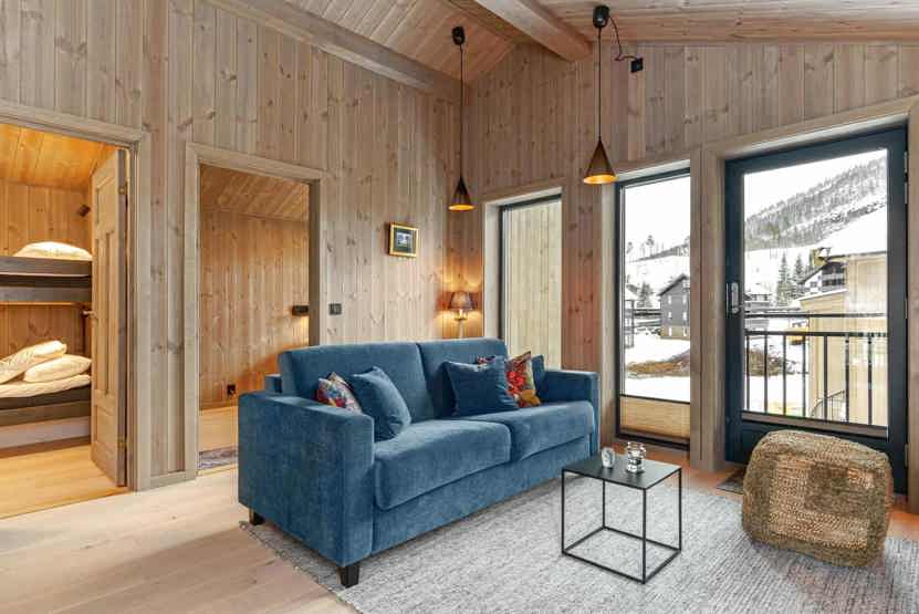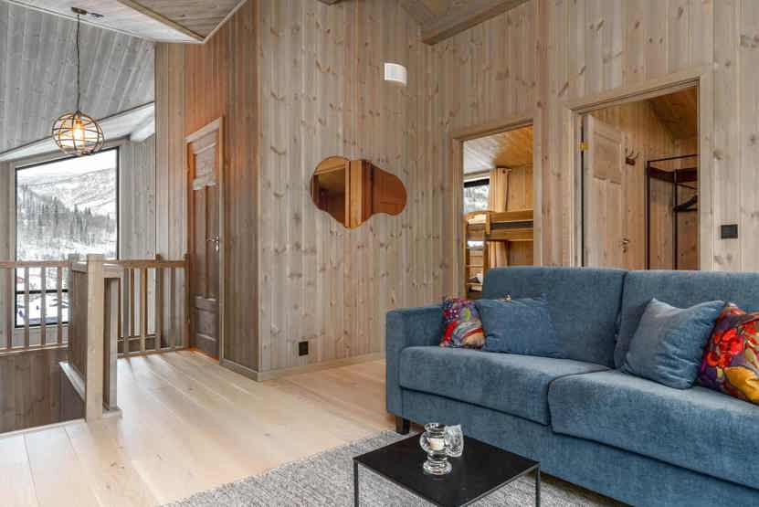 Fjellnest A309 er en ny og moderne lejlighed med stilfuld atmosfære, på 2. etage i to plan med ekstra stue i overetagen.