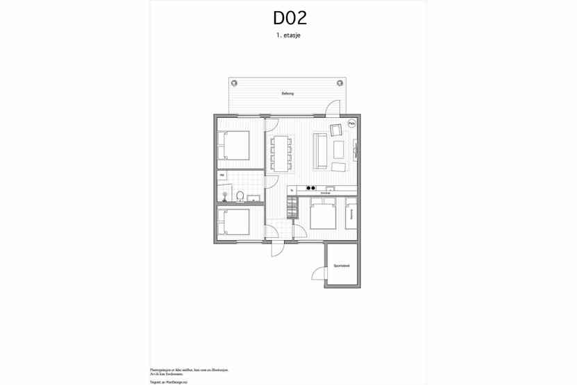 Fjellnest D102 er en ny og moderne lejlighed med stilfuld atmosfære, i stueetagen.
