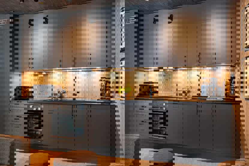 Indeholder bl.a. opvaskemaskine, komfur m/ovn, mikroovn, køleskab m/fryser.