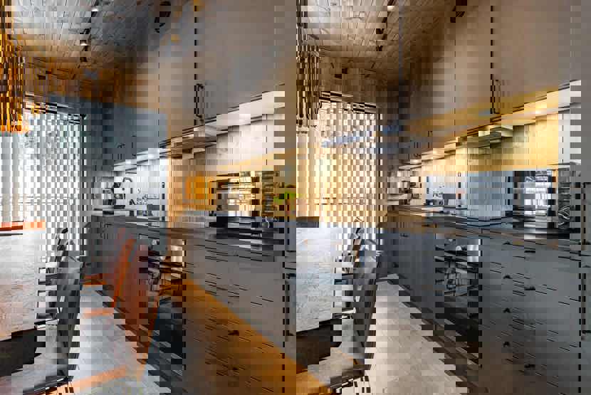 Indeholder bl.a. opvaskemaskine, komfur m/ovn, mikroovn, køleskab m/fryser.