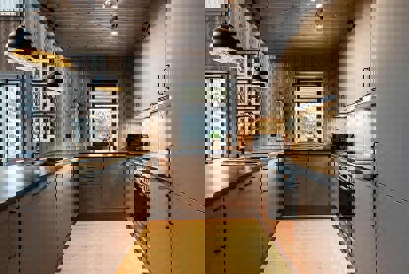 Indeholder bl.a. opvaskemaskine, komfur m/ovn, mikroovn, køleskab m/fryser.