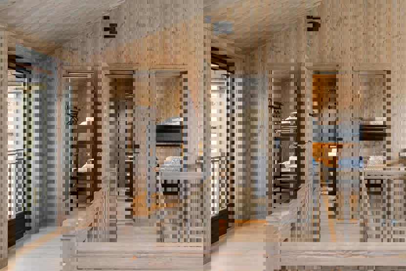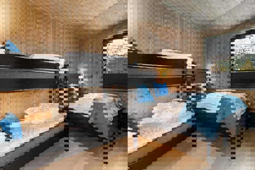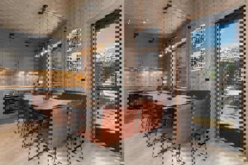 Fjellnest F308 er en ny og moderne lejlighed med stilfuld atmosfære, på 2. etage i to plan med ekstra stue i overetagen.