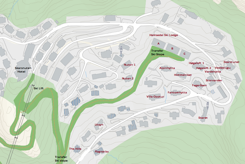 Afstande: Afhængigt af sneforholdene kan afstanden til lift/bakke variere, lift, bakke ca. 25 meter, langrendsløjper 1000 meter.