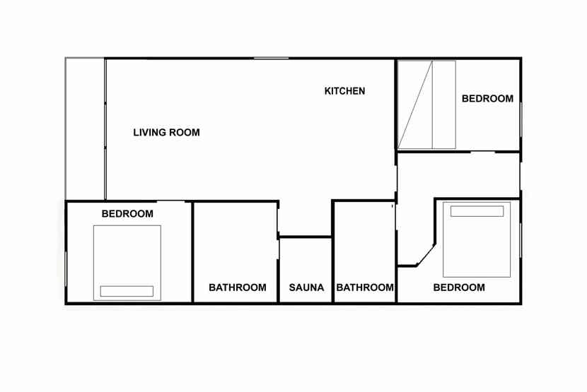 Bad 1: WC, bruser, sauna. Bad 2: WC, bruser.