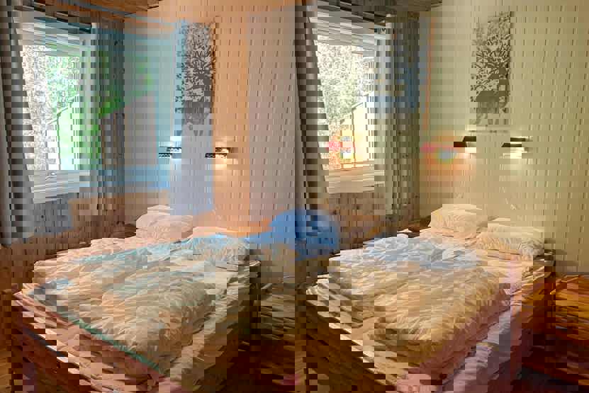 Soveværelse 1: 1 dobbeltseng. Soveværelse 2: 1 familie køjeseng med 120 cm bred underkøje. Soveværelse 3: 1 familie køjeseng med 120 cm bred underkøje.