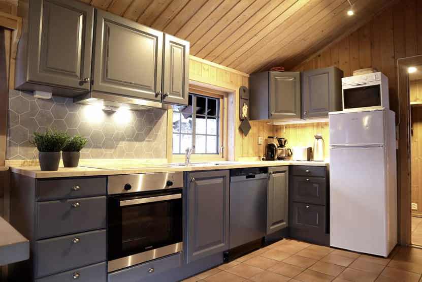 Indeholder bl.a. komfur, køleskab med fryser, opvaskemaskine, mikroovn.