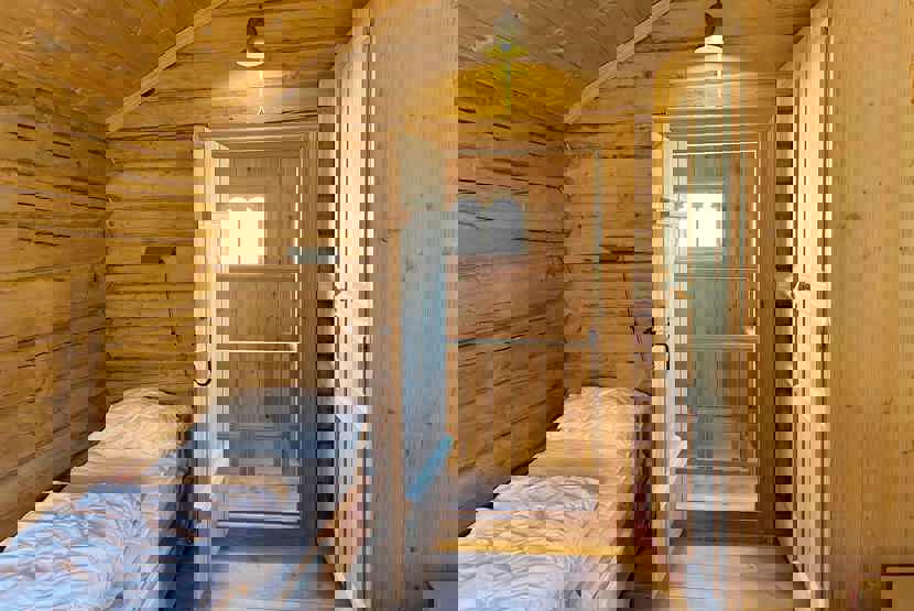 Hytte, 5 sengepladser, 50 m², alrum med køkkenafdeling, TV, 2 soveværelser, 1 bruser, 1 WC.