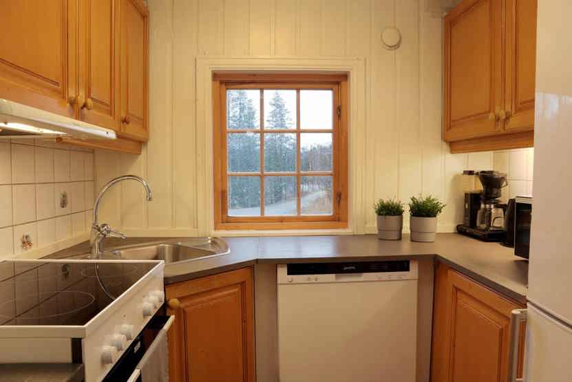 Indeholder bl.a. opvaskemaskine, mikroovn komfur, køleskab med fryser.