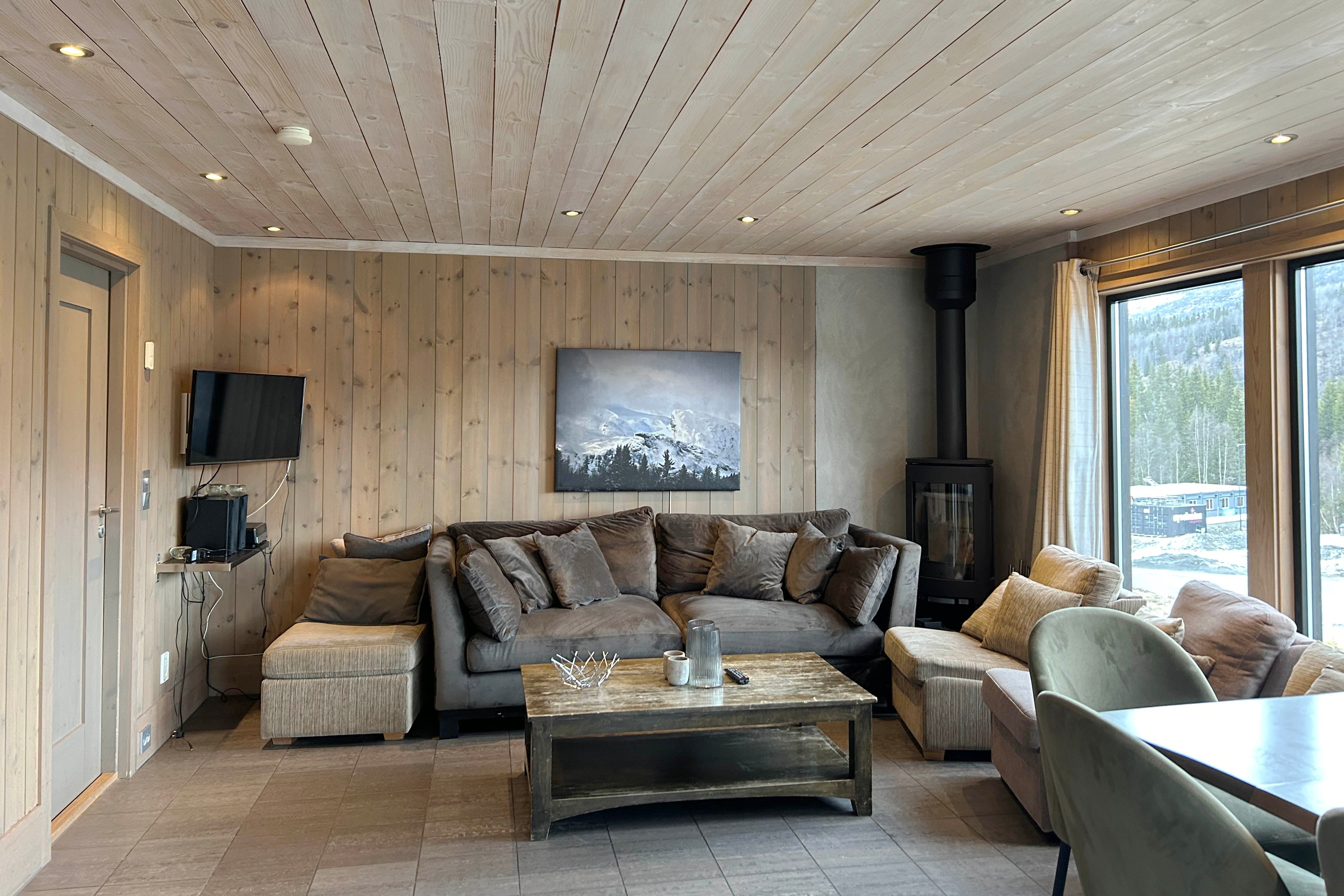 Alle hytter er i 2 etager og med åben stue/køkken løsning. Fuldt udstyret køkken, stue med TV og brændeovn eller pejs. Hytterne er individuelt møbleret.