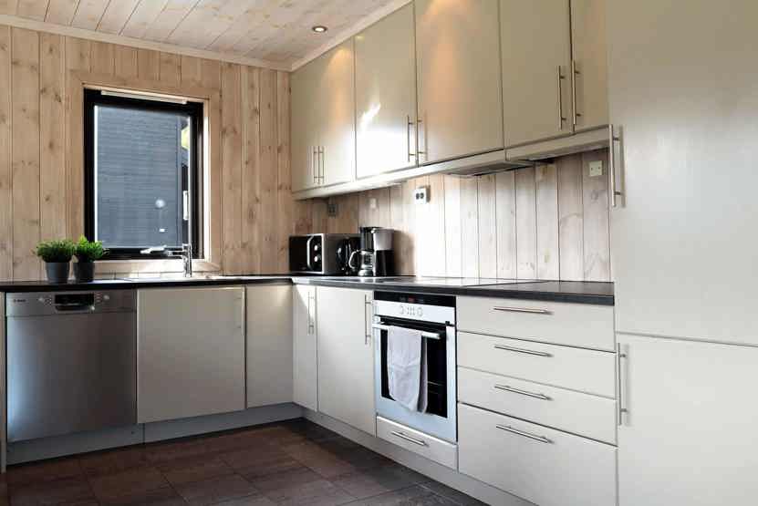 Indeholder bl.a. mikroovn, komfur med ovn, køleskab m/fryser, opvaskemaskine.