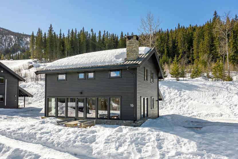 Rådyrlia 15. Minimalistisk og stilren dobbelthytte med Ski in / Ski out 150 m fra Hemsedal Skisenter. Ligger med bedste beliggenhed, blot 200 m til børneområdet i Hemsedal Skisenter. Ved SkiStar lodge Hemsedal, ligger skiudleje, restauranter, sportsbutik, supermarked m.m. Velegnet til Børnefamilier og venner.