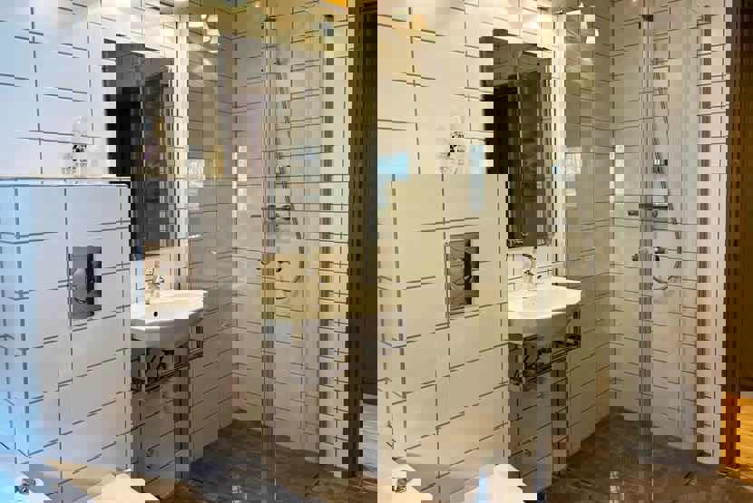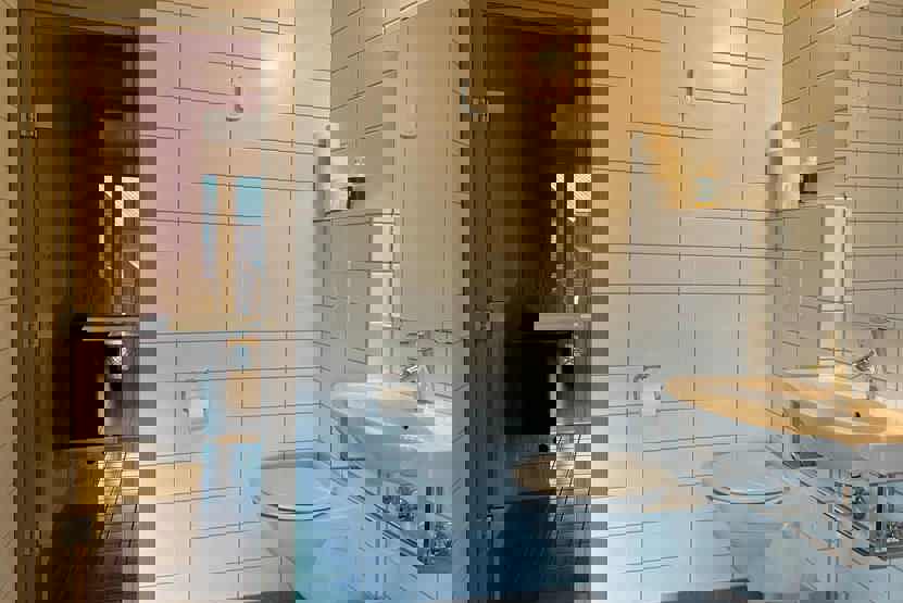 Bad 1: WC, bruser, sauna. Bad 2: WC, bruser, boblebadekar.