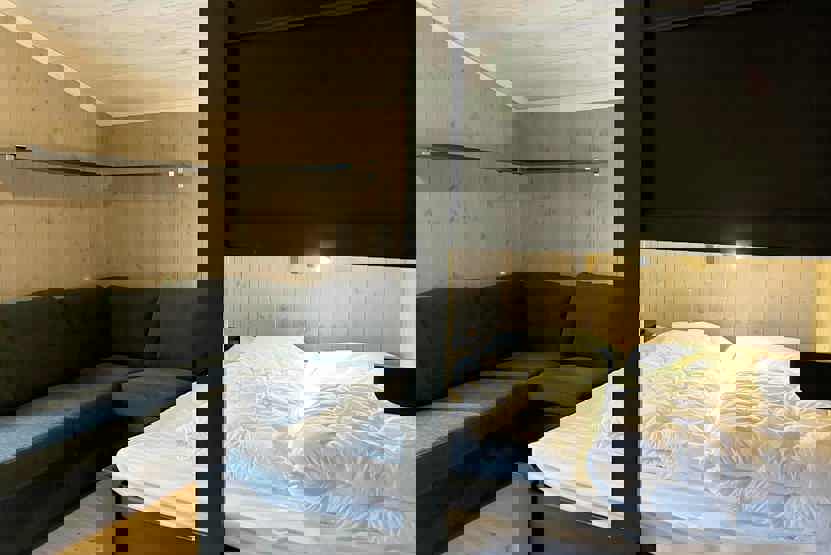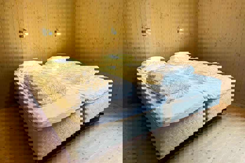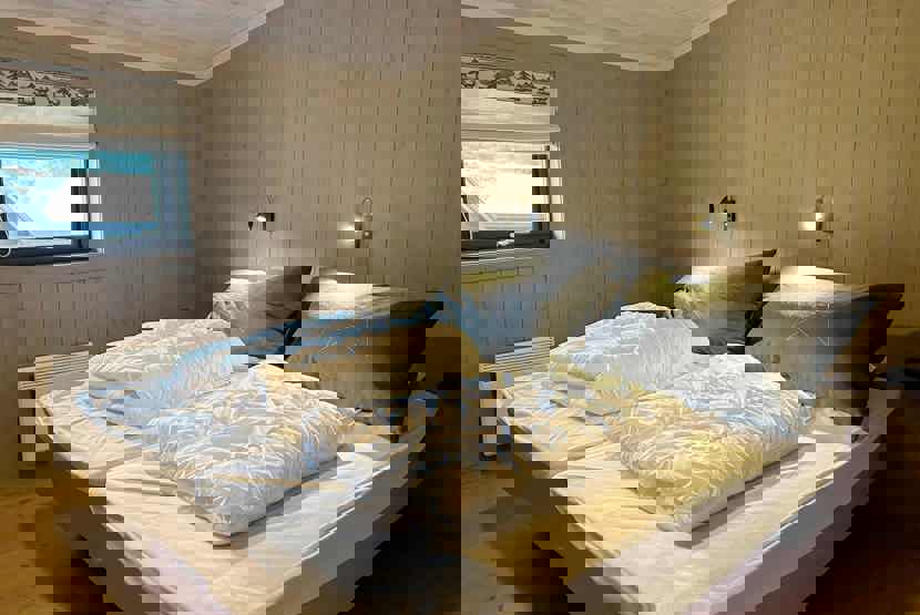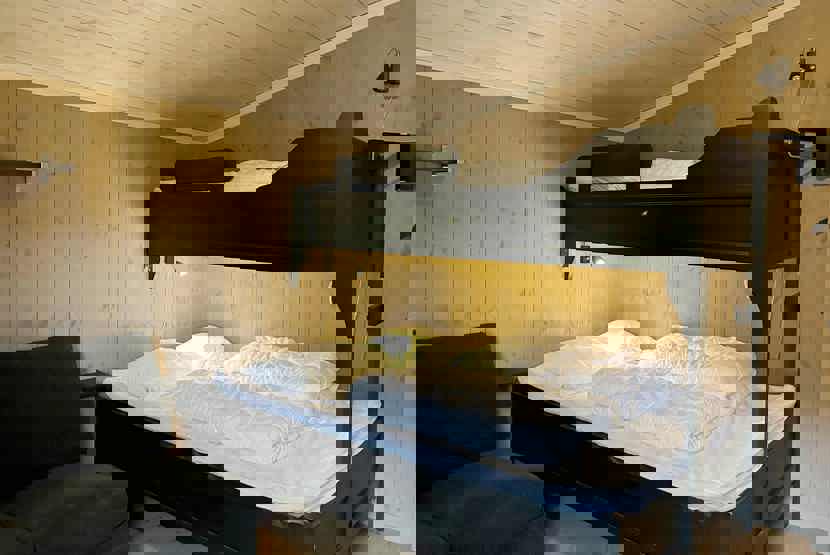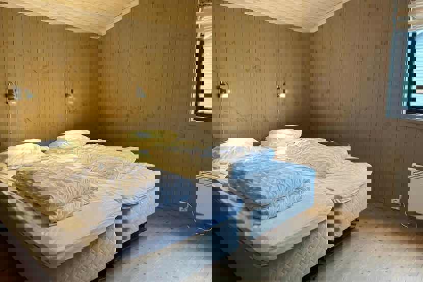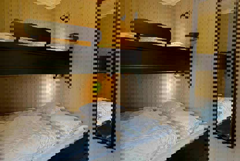 Soveværelse 1: 1 køjeseng med 150 cm bred underkøje. Soveværelse 2: 1 dobbeltseng eller 2 enkeltsenge. Soveværelse 3: 1 dobbeltseng eller 2 enkeltsenge. Soveværelse 4: Aktivitetsrum med TV, DVD og 1 køjeseng med 150 cm bred underkøje.