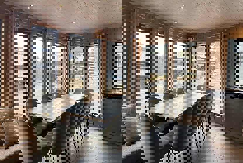 Rådyrlia 2. Minimalistisk og stilren dobbelthytte med Ski in / Ski out 150 m fra Hemsedal skisenter. Ligger med bedste beliggenhed, blot 200 m til børneområdet i Hemsedal Skisenter. Ved SkiStar lodge Hemsedal, ligger skiudleje, restauranter, sportsbutik, supermarked m.m. Velegnet til Børnefamilier og venner.
