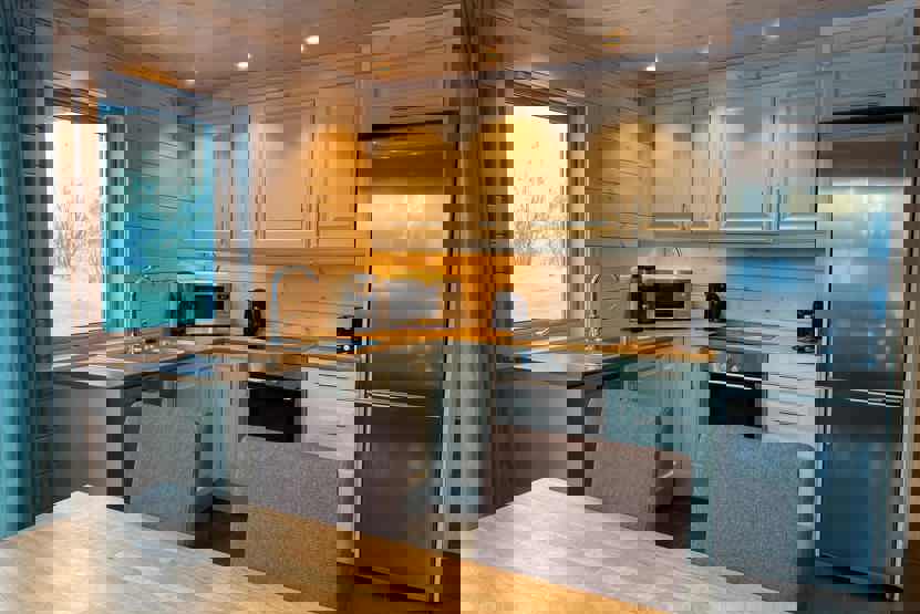 Indeholder bl.a. opvaskemaskine, mikroovn, komfur med ovn, køleskab m/fryser.