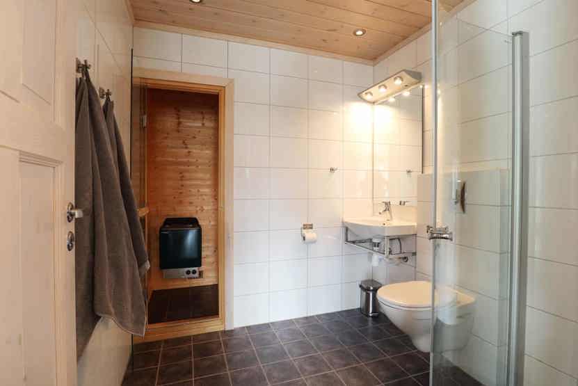 Bad 1: WC, bruser, sauna. Bad 2: WC, bruser, boblebadekar.
