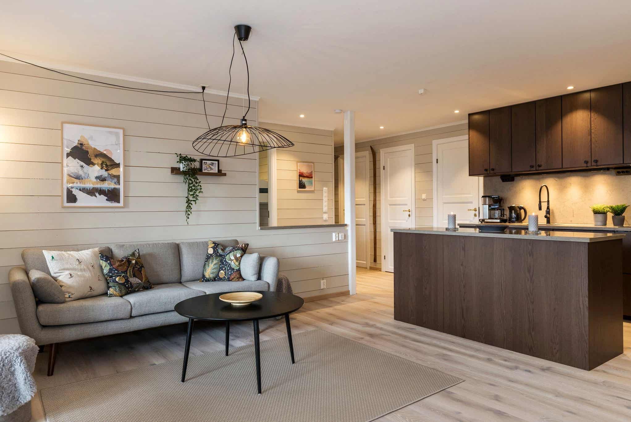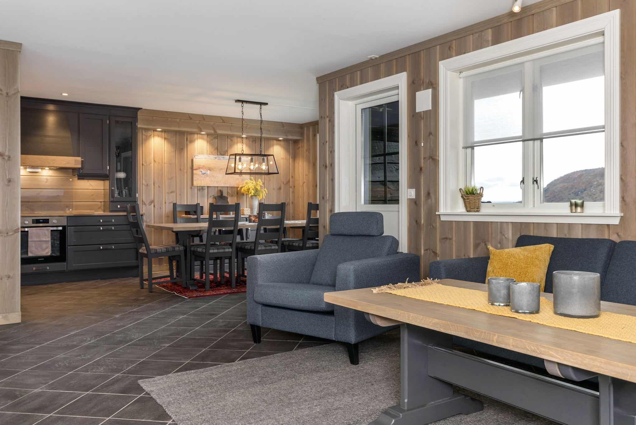 Skarsnuten Fjellandsby - Hytteområdet helt til tops. Midt i mellem Hemsdalsfjeldende ligger Skarsnuten Fjellandsby 1.000 m.o.h. med en fantastisk udsigt over dalen og skicenteret. Området er kuperet, adgang til lejligheden kan derfor variere alt efter terrænet.