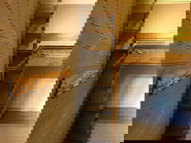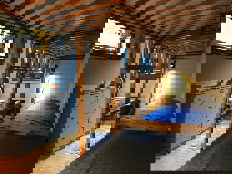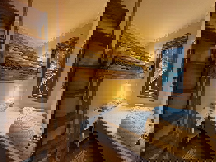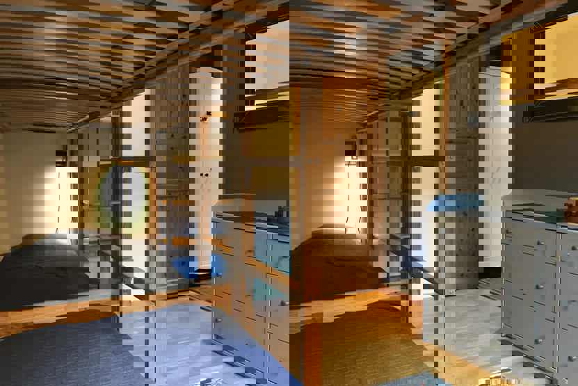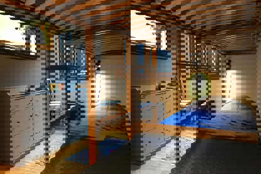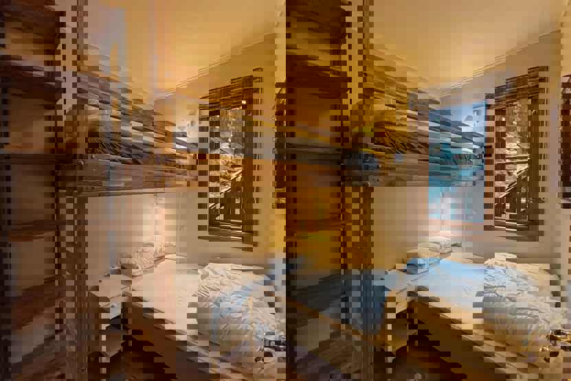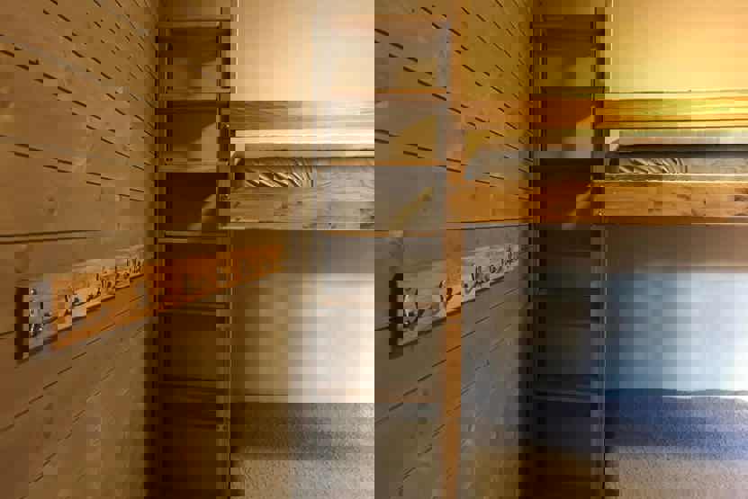 Soveværelse 1: 1 familiekøjeseng 160 cm bred underkøje. Soveværelse 2: 1 køjeseng med 120 cm bred underkøje. Soveværelse 3: 2 køjesenge 90 cm brede
