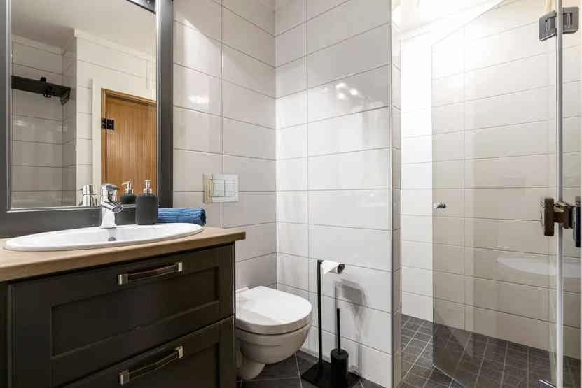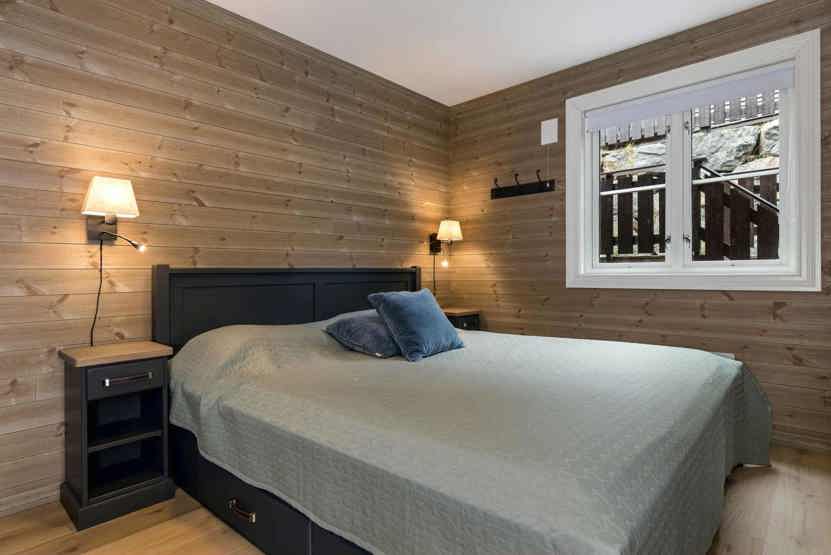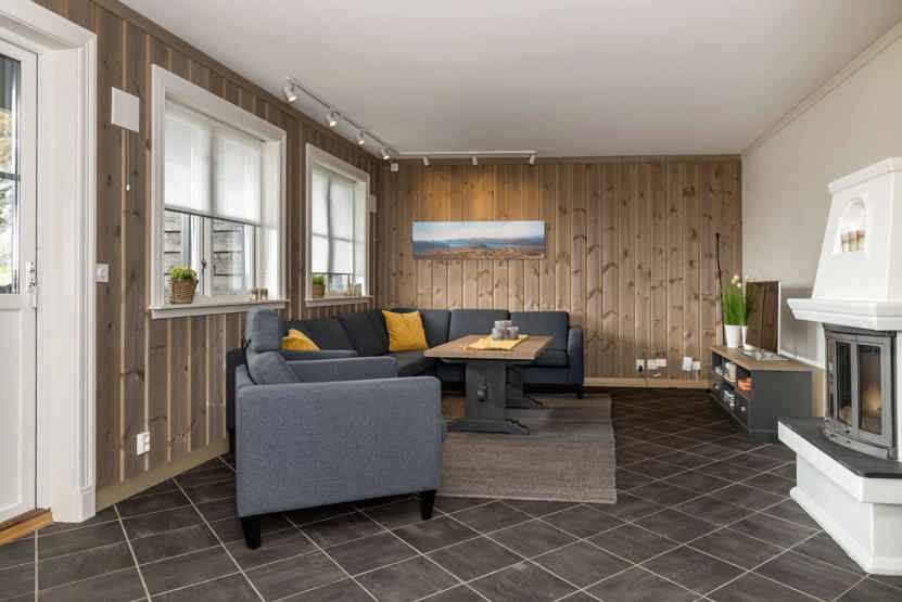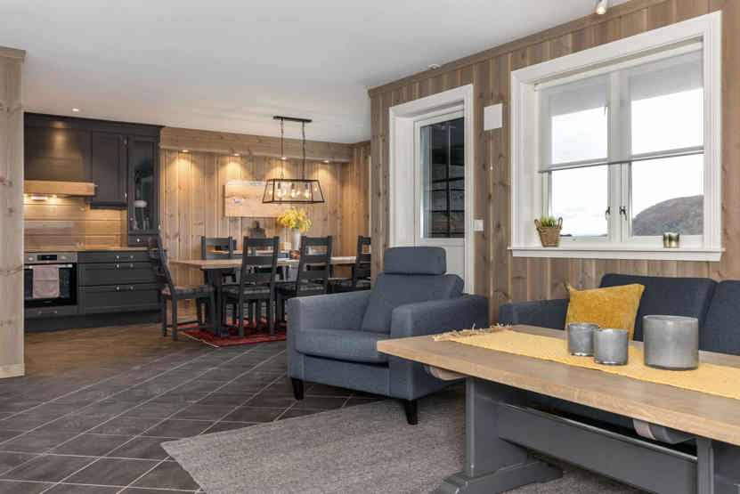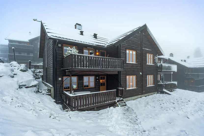Lejlighed med 8 sengepladser, 84 m2, Alrum med køkkenafdeling, pejs, TV, 3 soveværelser, 1 brusere, 2 WC, 1 sauna. Skiopbevaring.