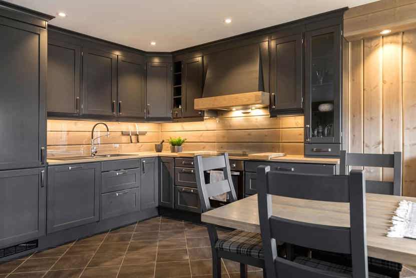Køkkenet indeholder bl.a. opvaskemaskine, komfur med ovn, køleskab m/fryser.