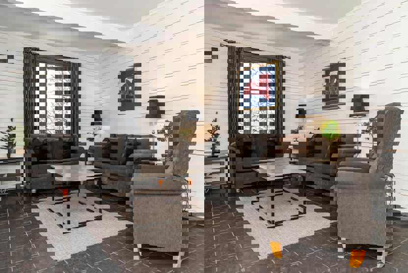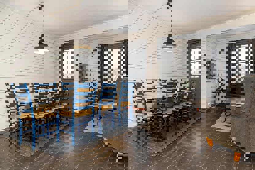 Lejlighed med 6+1 sengepladser, 84 m2, Alrum med køkkenafdeling, pejs, TV, 3 soveværelser, 1 brusere, 2 WC. 1 sauna. Skiopbevaring.
