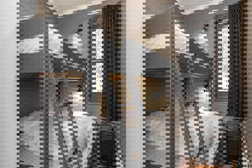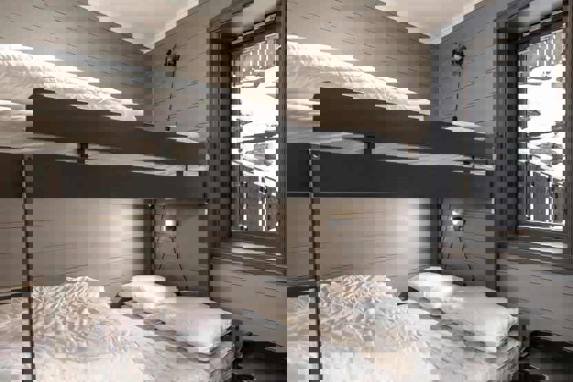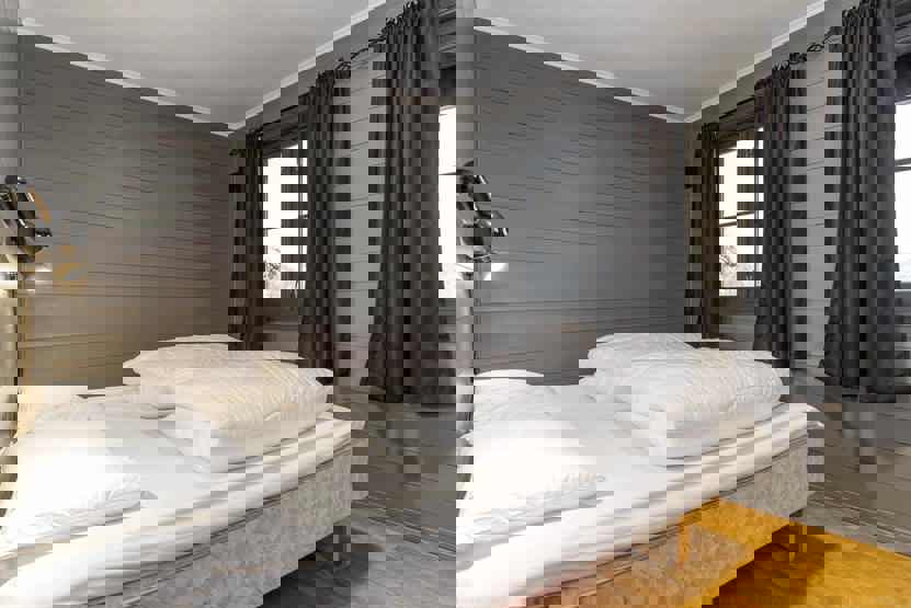 Soveværelse-1= 1 dobbeltseng. Soveværelse-2= 1 køjeseng med 120 cm bred underkøje. Soveværelse-3= 1 køjeseng med 120 cm bred underkøje.