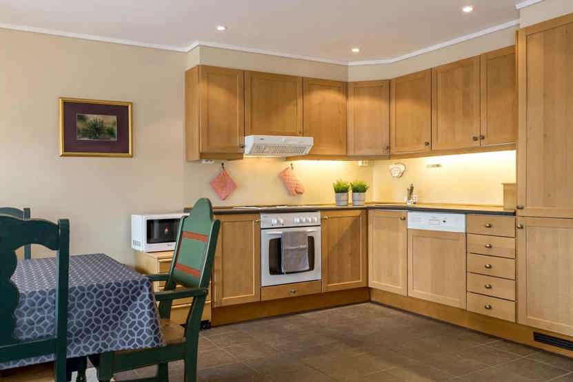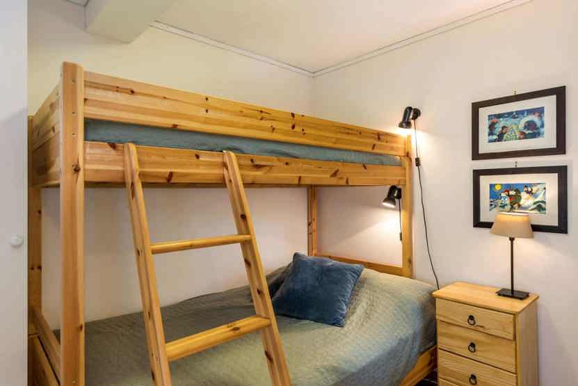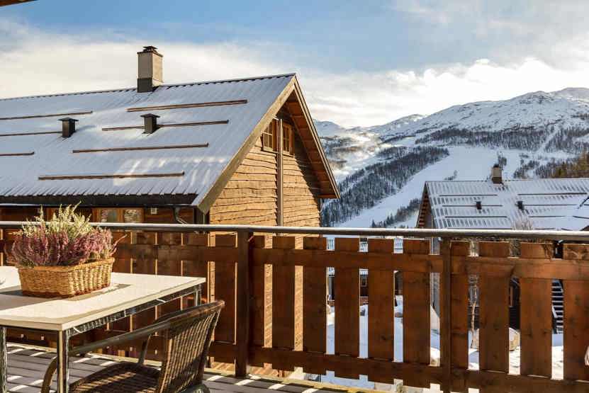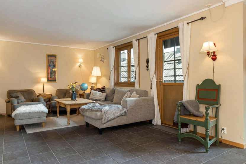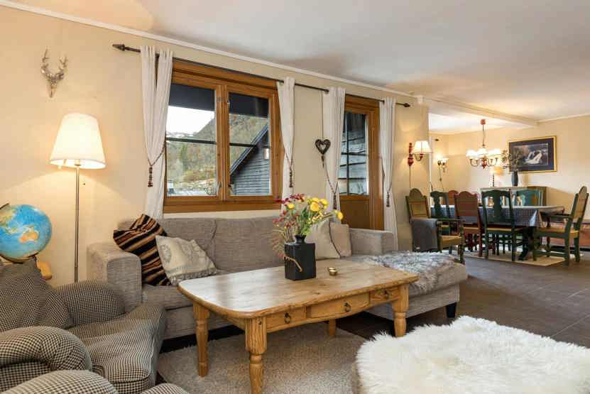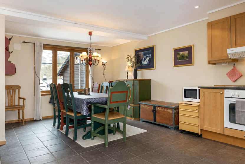 Lejlighed med 6+2 sengepladser, 84 m2, Alrum med køkkenafdeling, pejs, TV, 3 soveværelser, 1 brusere, 2 WC. 1 sauna. Skiopbevaring.