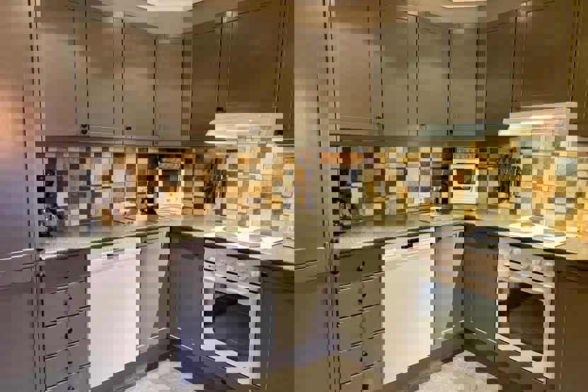 Køkkenet indeholder bl.a. opvaskemaskine, mikro, komfur med ovn, køleskab m/fryser.