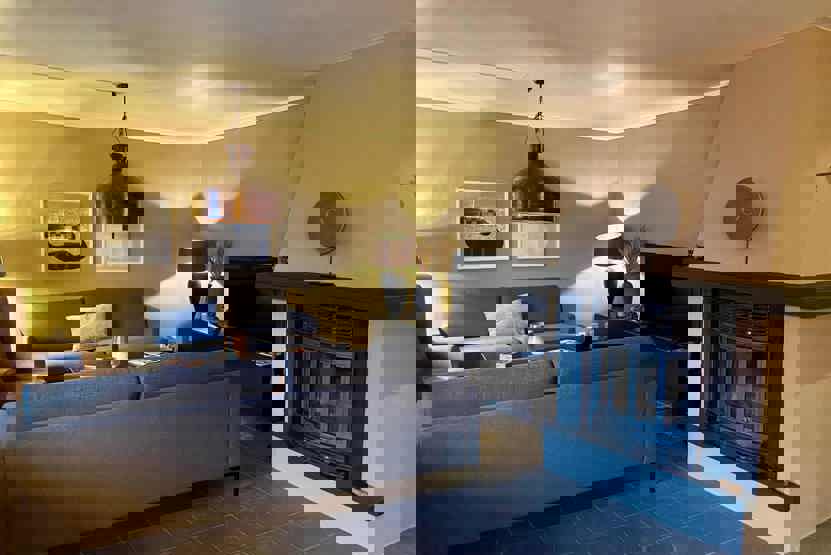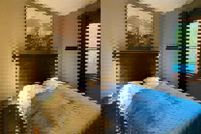 Lejlighed med 6+1 sengepladser, 84 m2, Alrum med køkkenafdeling, pejs, TV, 3 soveværelser, 1 brusere, 2 WC. 1 sauna. Skiopbevaring.