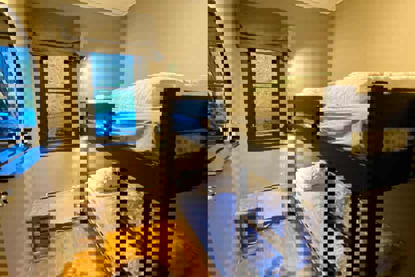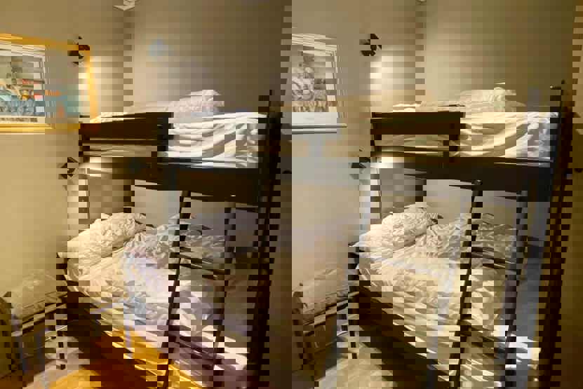 Soveværelse-1= 1 dobbeltseng. Soveværelse-2= 1 køjeseng med 120 cm bred underkøje. Soveværelse-3= 1 køjeseng.