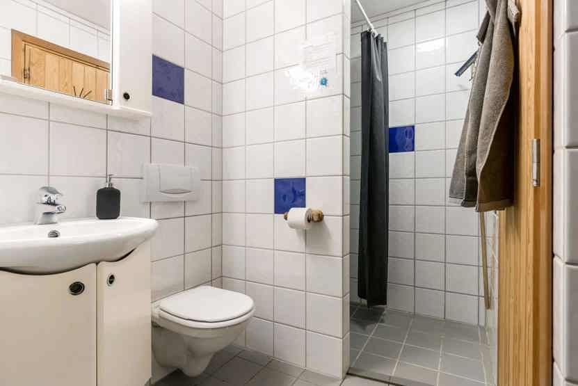Bad 1: sauna, WC, bruser. Bad 2: WC.