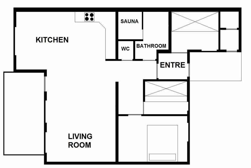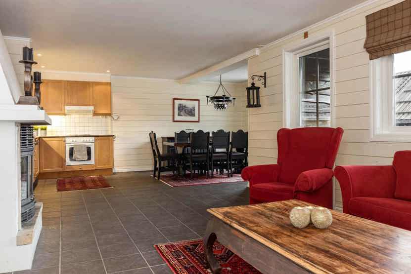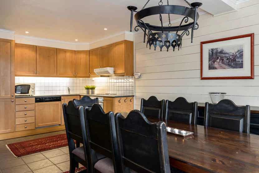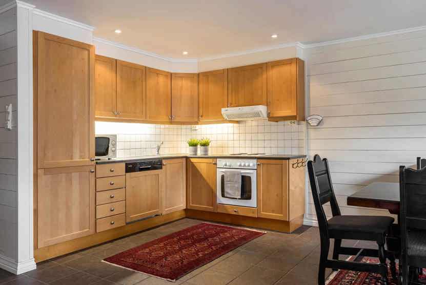 Lejlighed med 6+1 sengepladser, 84 m2, Alrum med køkkenafdeling, pejs, TV, 3 soveværelser, 1 brusere, 2 WC. 1 sauna. Skiopbevaring.