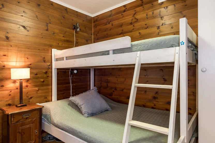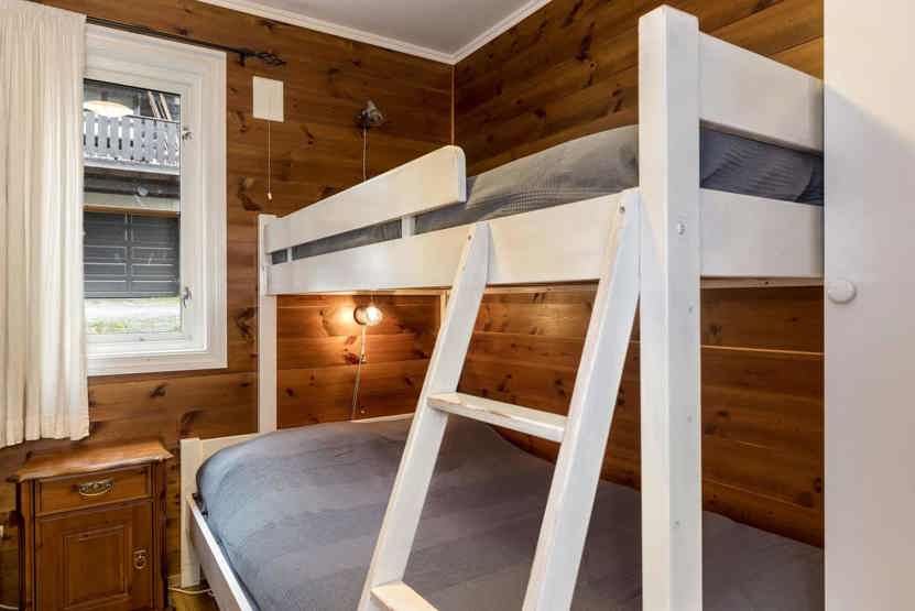 Soveværelse-1= 1 dobbeltseng. Soveværelse-2= 1 køjeseng med 120 cm bred underkøje. Soveværelse-3= 1 køjeseng med 120 cm bred underkøje.