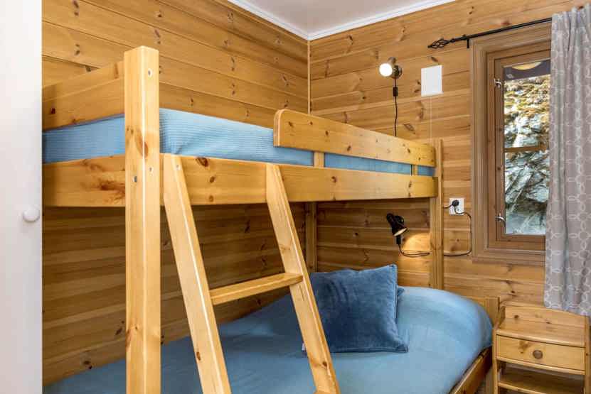 Soveværelse-1= 1 dobbeltseng. Soveværelse-2= 1 køjeseng med 120 cm bred underkøje. Soveværelse-3= 3 enkeltsenge. Soveværelse-4= 2 enkeltsenge.