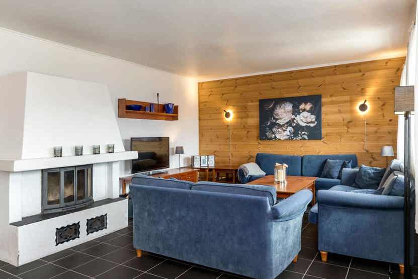 Skarsnuten 163, Lejlighed på 2. sal i 2 etager. 9+1 sengepladser, 119 m2, Opholdsstue med køkkenafdeling, pejs, TV, Lille repos med sofa. 4 soveværelser, 2 brusere, 2 WC, sauna, Skarsnuten Fjellandsby ligger i et kuperet område. Adgang til lejligheden kan variere alt efter terrænet.
