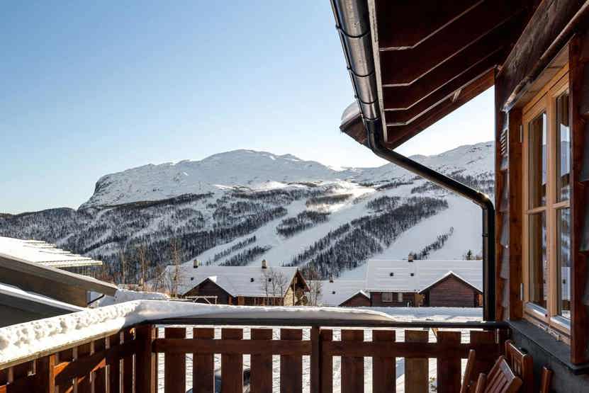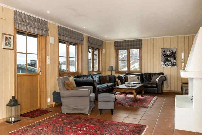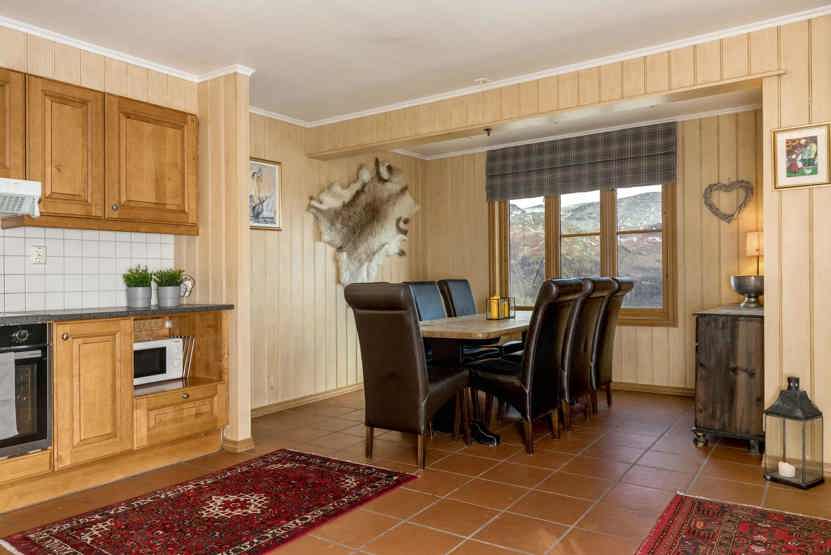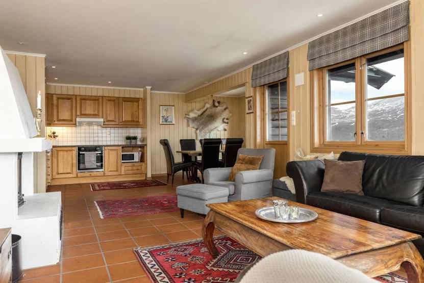 Skarsnuten 164, Lejlighed på 2. sal i 2 etager. 9+1 sengepladser, 119 m2, Opholdsstue med køkkenafdeling, pejs, Lille repos med stole. 4 soveværelser, 2 brusere, 2 WC, sauna, Skarsnuten Fjellandsby ligger i et kuperet område. Adgang til lejligheden kan variere alt efter terrænet.