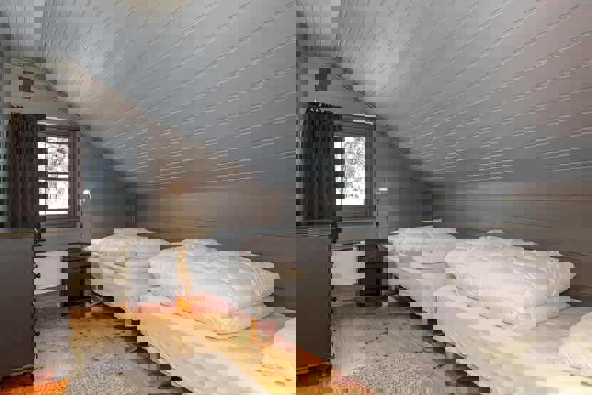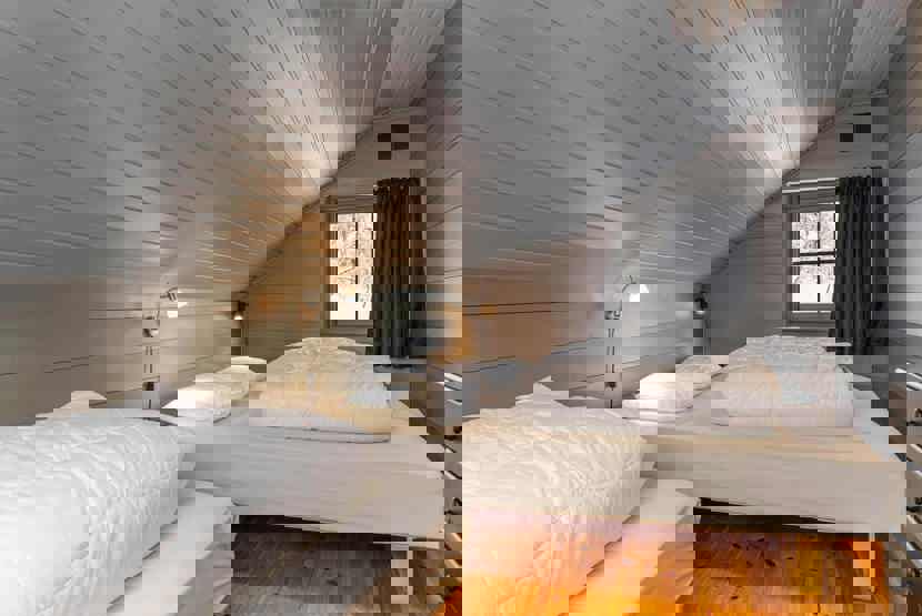 Soveværelse-1= 1 dobbeltseng. Soveværelse-2= 1 køjeseng med 120 cm bred underkøje. Soveværelse-3= 3 enkeltsenge. Soveværelse-4= 2 enkeltsenge.