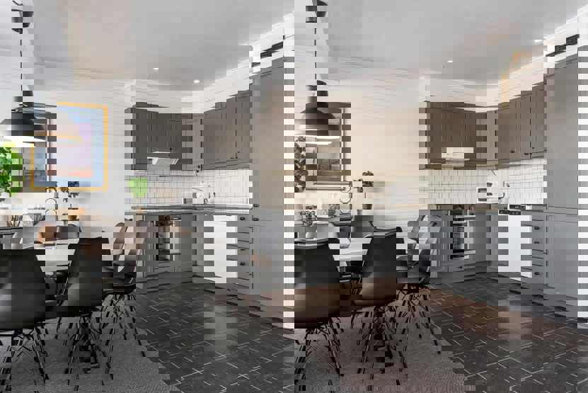 Køkkenet indeholder bl.a: komfur, ovn, køleskab m/fryser, opvaskemaskine, mikro.